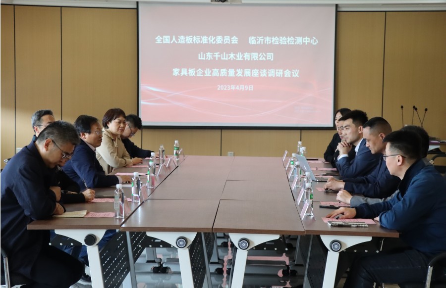 4月9日下午,全國人造板標準化技術委員會副主任兼秘書長研究員段新芳,副秘書長李曉玲,臨沂市檢驗檢測中心黨組書記、主任劉愛友,黨組成員、副主任黃波,市檢驗檢測中心質檢所所長竇興霞及相關專業技術人員蒞臨千山木業進行調研。 領導一行先后參觀了千山新建自動化生態板生產車間、高標準成品庫、國內先進的浸漬膠膜紙飾