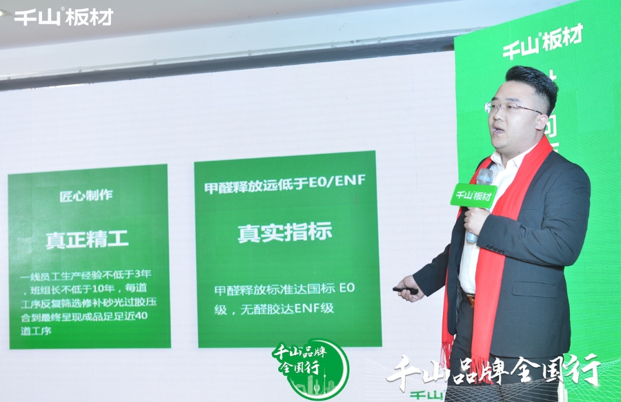 銷售部大區經理王殿忠為大家詳細介紹了千山的產品體系。深耕行業26年,千山積極響應市場需求,推陳出新,滿足消費者對于品質產品和潮流花色的切實需求。