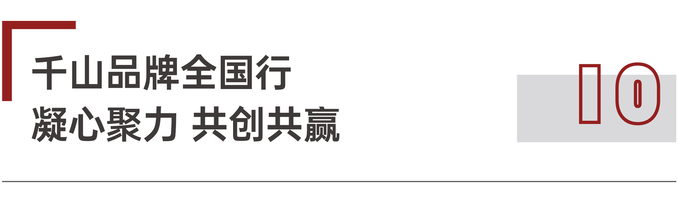 盤點是為了更好地總結,回顧是為了更好地前行。2024年是千山的品牌發展年,也是實現“三年翻番”總體經營目標的關鍵之年,我們將以更加飽滿的熱情和實際行動吹響沖鋒號角,奮力沖刺,決勝2024!