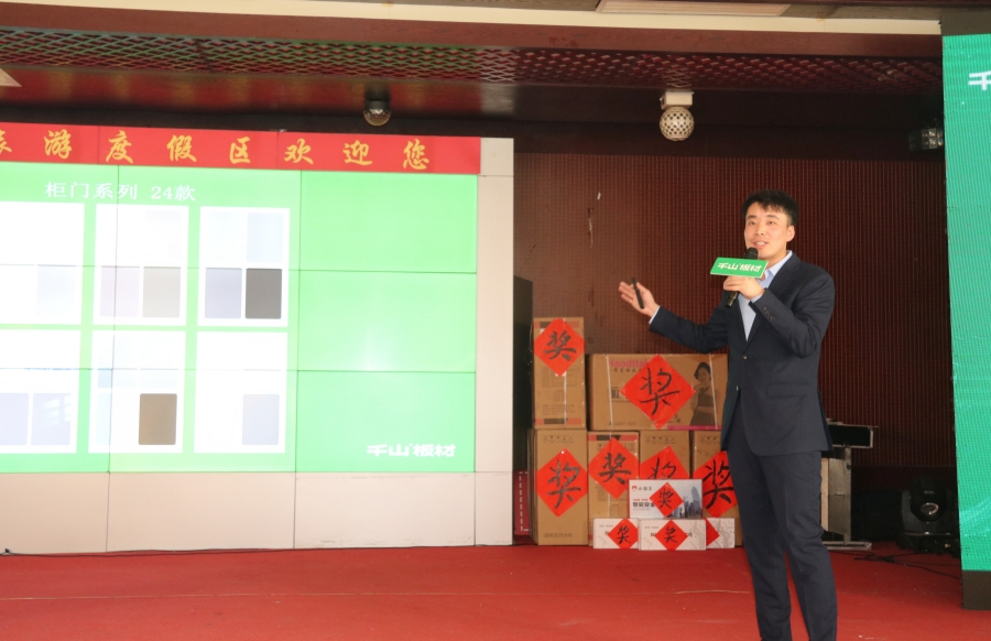 千山板材大區經理王殿忠致辭。王經理分享到,千山站在向上而行的又一個嶄新階段,也將持續圍繞產品力,把握長期趨勢,以開放的心態,與全國合作伙伴攜手共進。