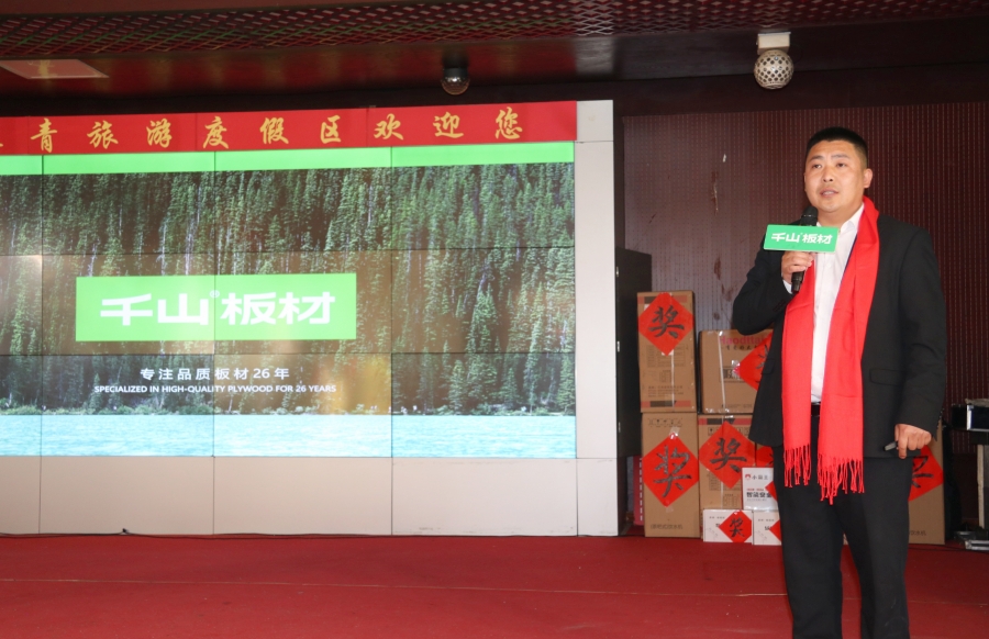 千山板材莒縣倉負責人張玉勝致辭。張總講到,在所有合作伙伴的支持下,千山板材的整體銷售持續增長,在肯定成績和總結經驗的同時,要理順思路、改進不足,也歡迎伙伴們建言獻策,共同成長。