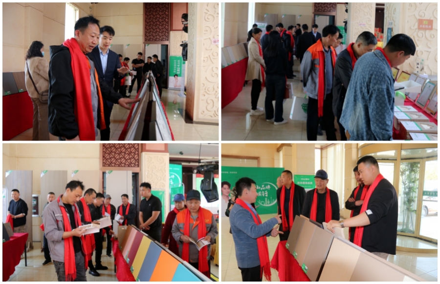 上午9點,伙伴們陸續抵達活動現場,有序簽到,并紛紛在簽到墻前合影留念,記錄精彩瞬間。隨后,大家仔細參觀了千山板材產品展示區,近距離感受2024年新款潮流花色。