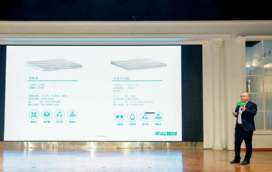 千山板材區域經理盧興煒帶領大家回顧了千山26年的發展歷程。從單一生態板到多品類板材,再到板材、印刷浸膠、全屋定制等為一體的全產業鏈品牌運營企業,千山不斷探索、學習、調整,從有到優,進入了高質量發展的快車道。