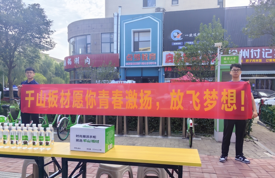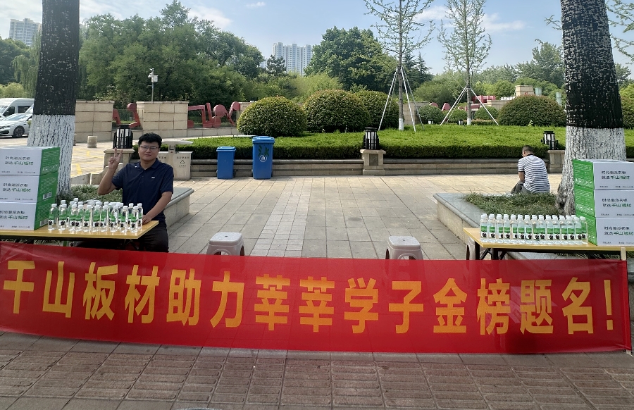 千山板材臨沂倉總經(jīng)理蘇東方特組織臨沂倉的小伙伴們?yōu)榭忌佑汀LK總表示,小小一瓶水,在給考生和家長帶來烈日下一份清涼的同時,也傳遞了千山板材對廣大考生的深深祝福,希望他們出色發(fā)揮、金榜題名!