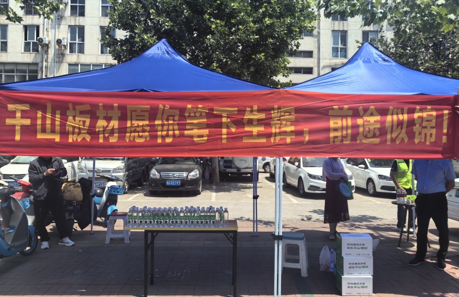 6月7日清晨,在臨沂一中、臨沂二中等高考考點,除了考生及家長的身影,還能看到千山板材的小伙伴們,他們早早抵達考點,準備飲用水、支起避暑帳篷,為考生和家長們提供一個相對涼爽、舒適的休息場所。