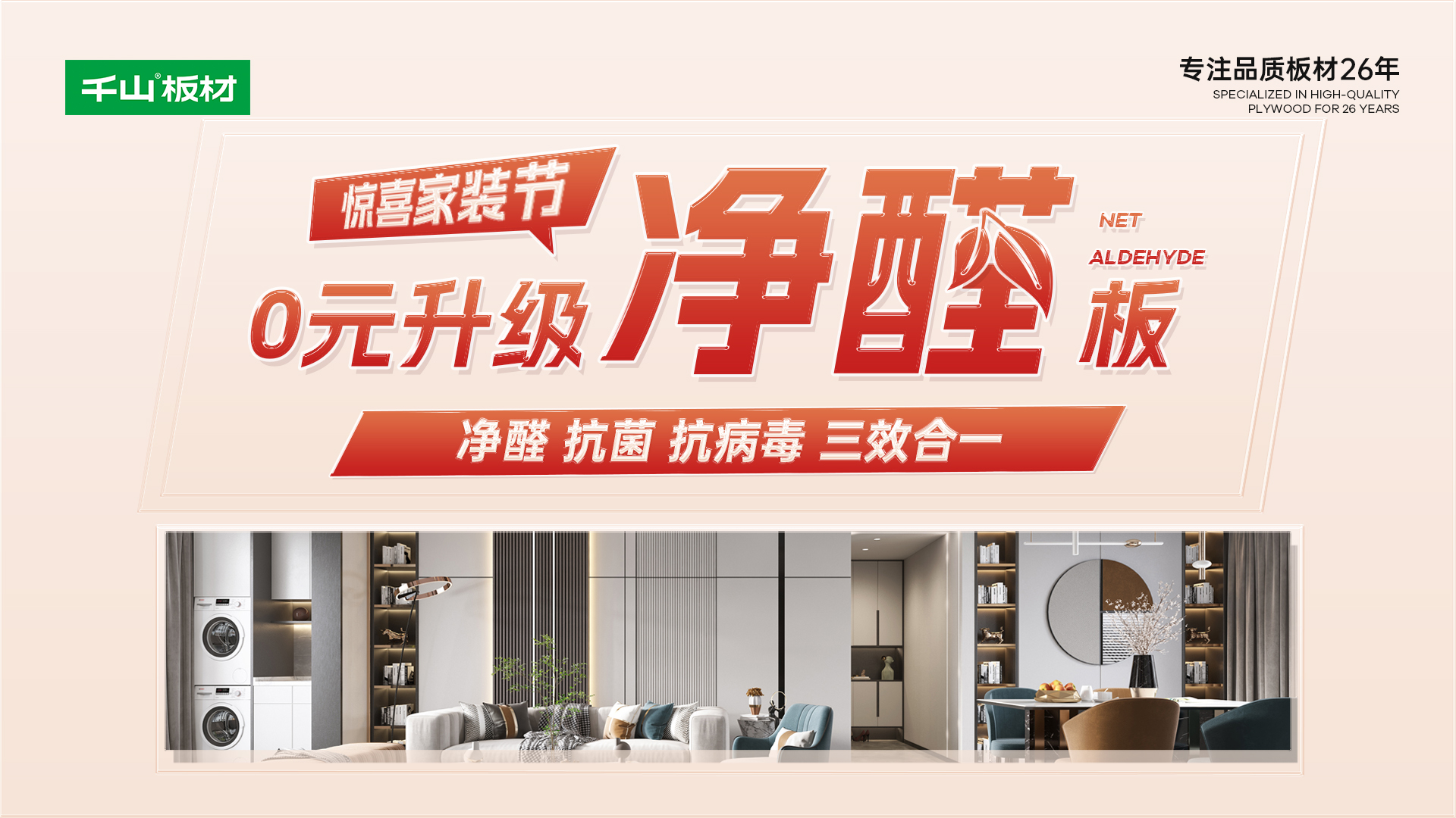 專注品質板材26年!千山始終堅持為消費者提供高品質、健康環保的家居產品?!拔覑畚壹摇苯鹎锛已b節,將再次把千山板材的品質理念推向新的高度,讓您輕輕松松裝整家。