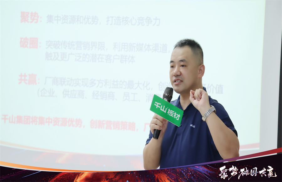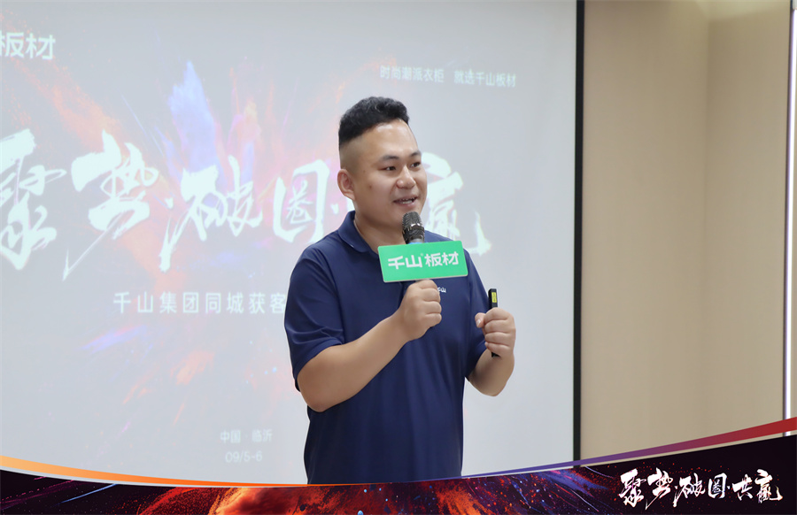在開營致辭中,千山板材山東倉總經理楊秀山首先對來到總部學習的伙伴們表示熱烈歡迎!楊總分享到,面對劣幣驅逐良幣的激烈競爭環境,破局向上、流量打造勢在必行。如今是短視頻和直播時代,大家要提高自身專業度,布局線上渠道,驅動增長也希望家人們把握學習好時機,滿載而歸。