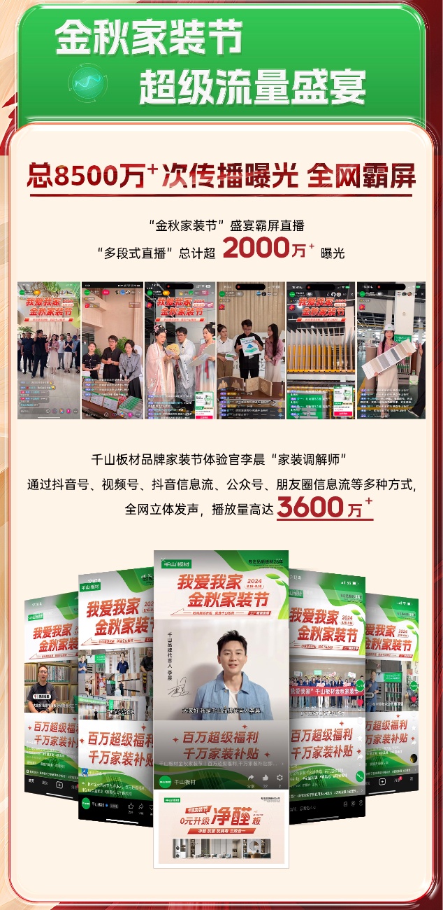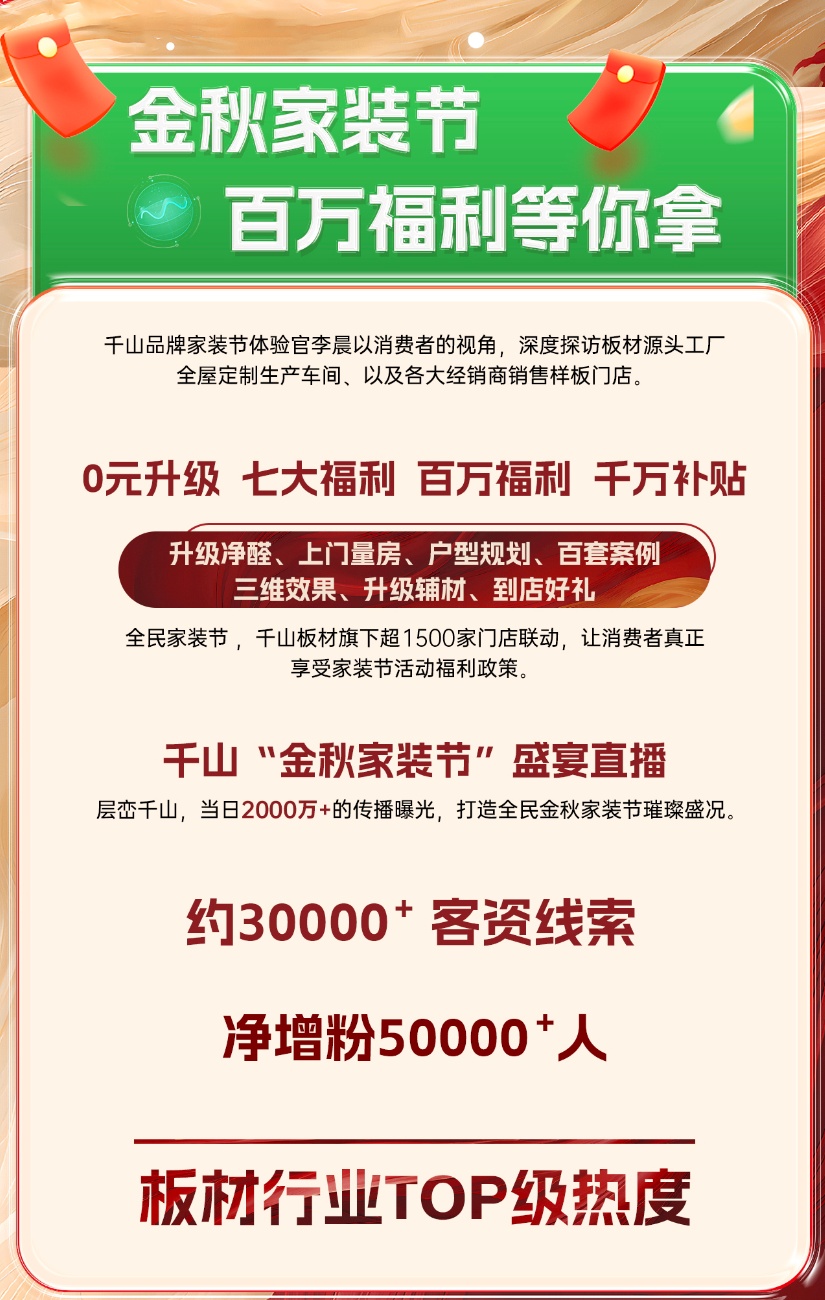 全國(guó)聯(lián)動(dòng) 火力全開(kāi)丨流量超8500萬(wàn),人氣再創(chuàng)新高!千山金秋家裝節(jié)圓滿收官!