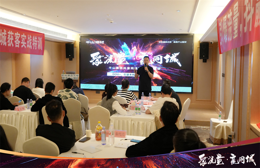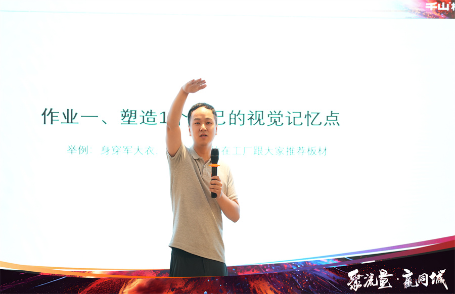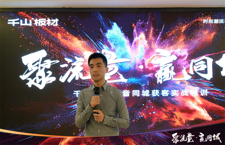 2024年千山著重發力線上渠道,通過抖音同城獲客引導經銷商伙伴們突破自我,入局賽道,通過持續的線上轉化促進業績增長。千山集團品牌運營中心于昆總監為大家解讀了“板材生意”增長的“新渠道、新營銷、新增量”,通過多樣化的營銷策略,打造線上社媒傳播陣地,最終賦能終端。