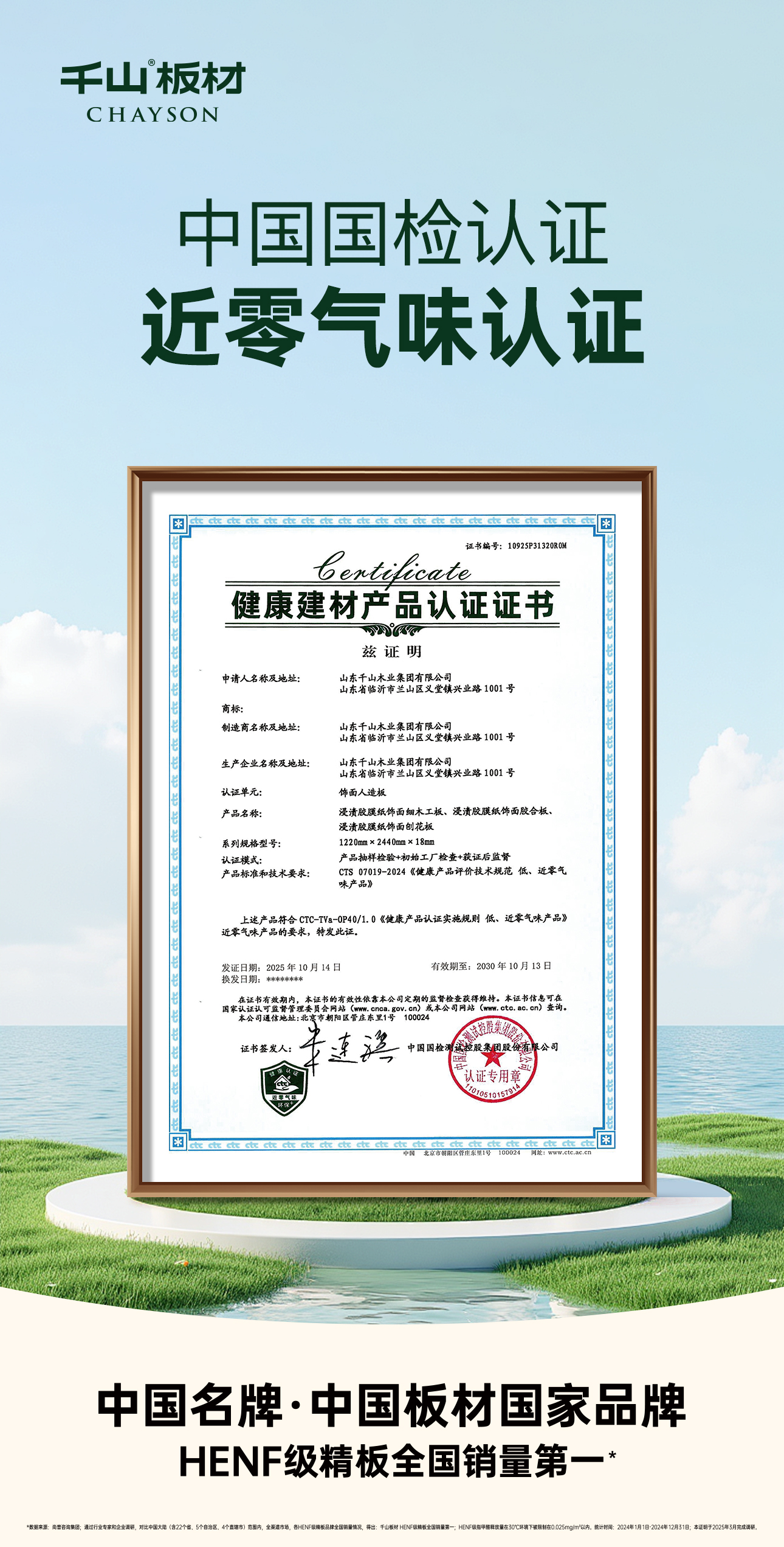 中國國檢雙認證!千山板材榮獲雙項權威認證,為家居健康保駕護航
