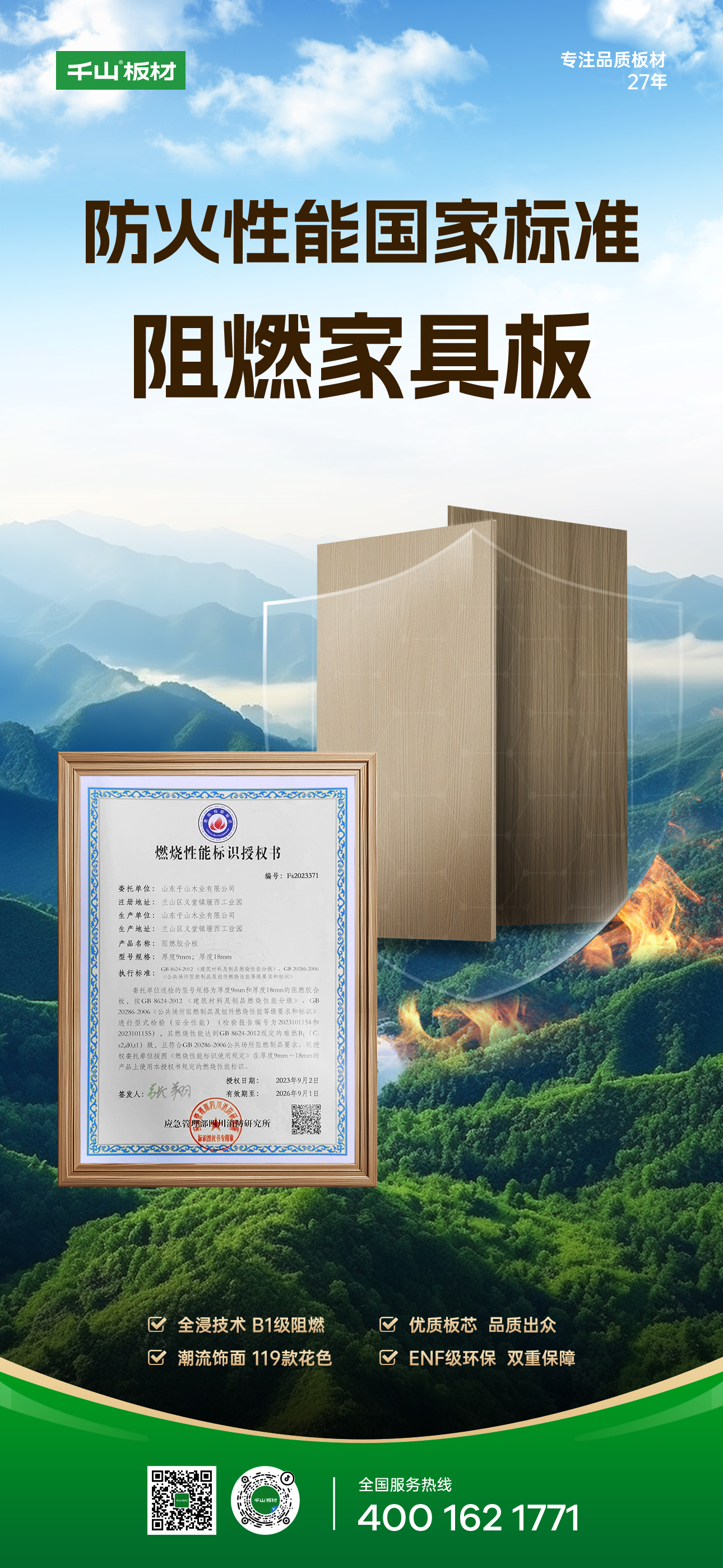 質敬315 護航365丨千山板材阻燃家具板重磅上市,防火阻燃,安全守護!