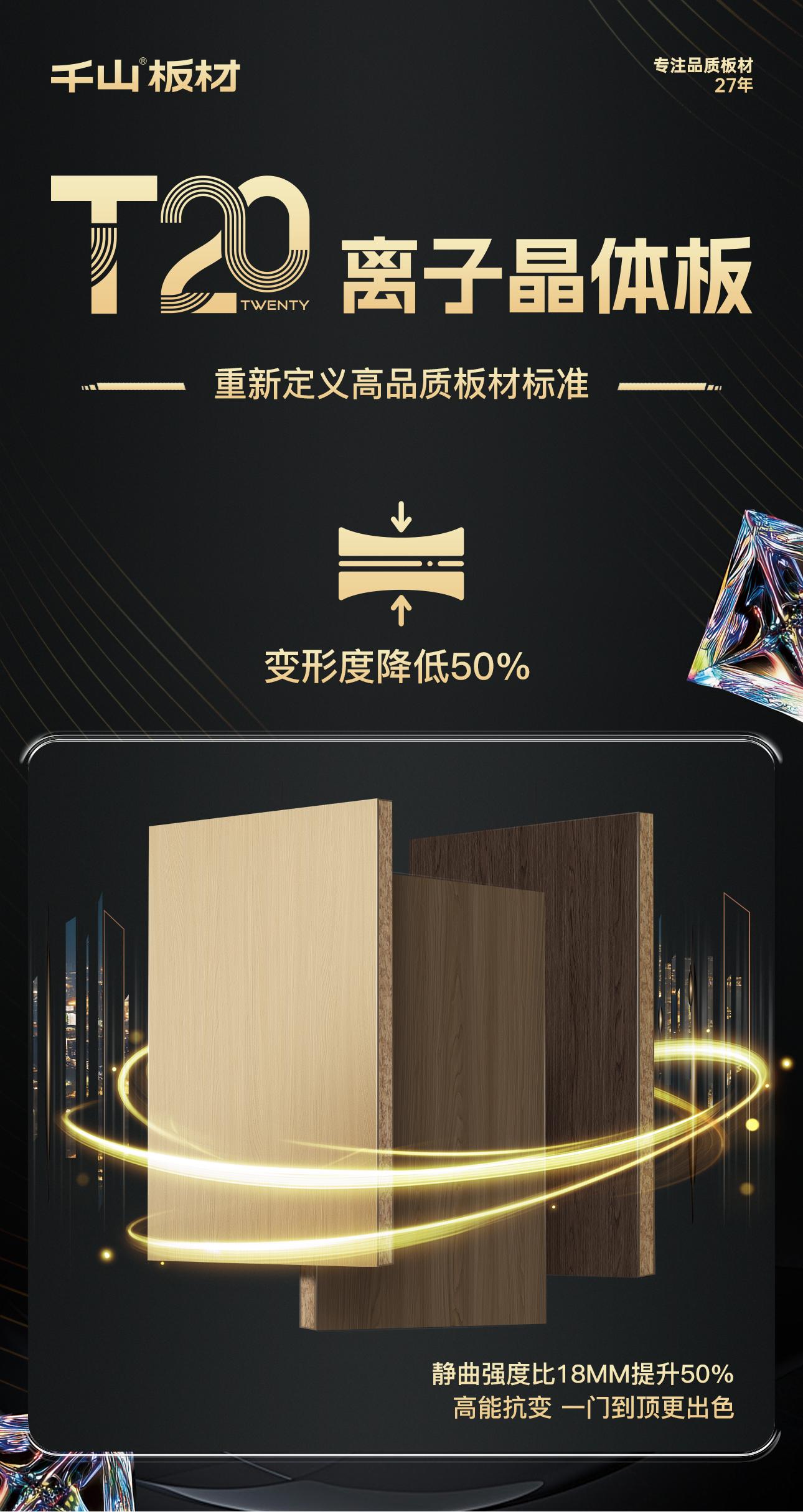 重磅新品丨千山板材T20離子晶體板,重新定義高品質板材標準!