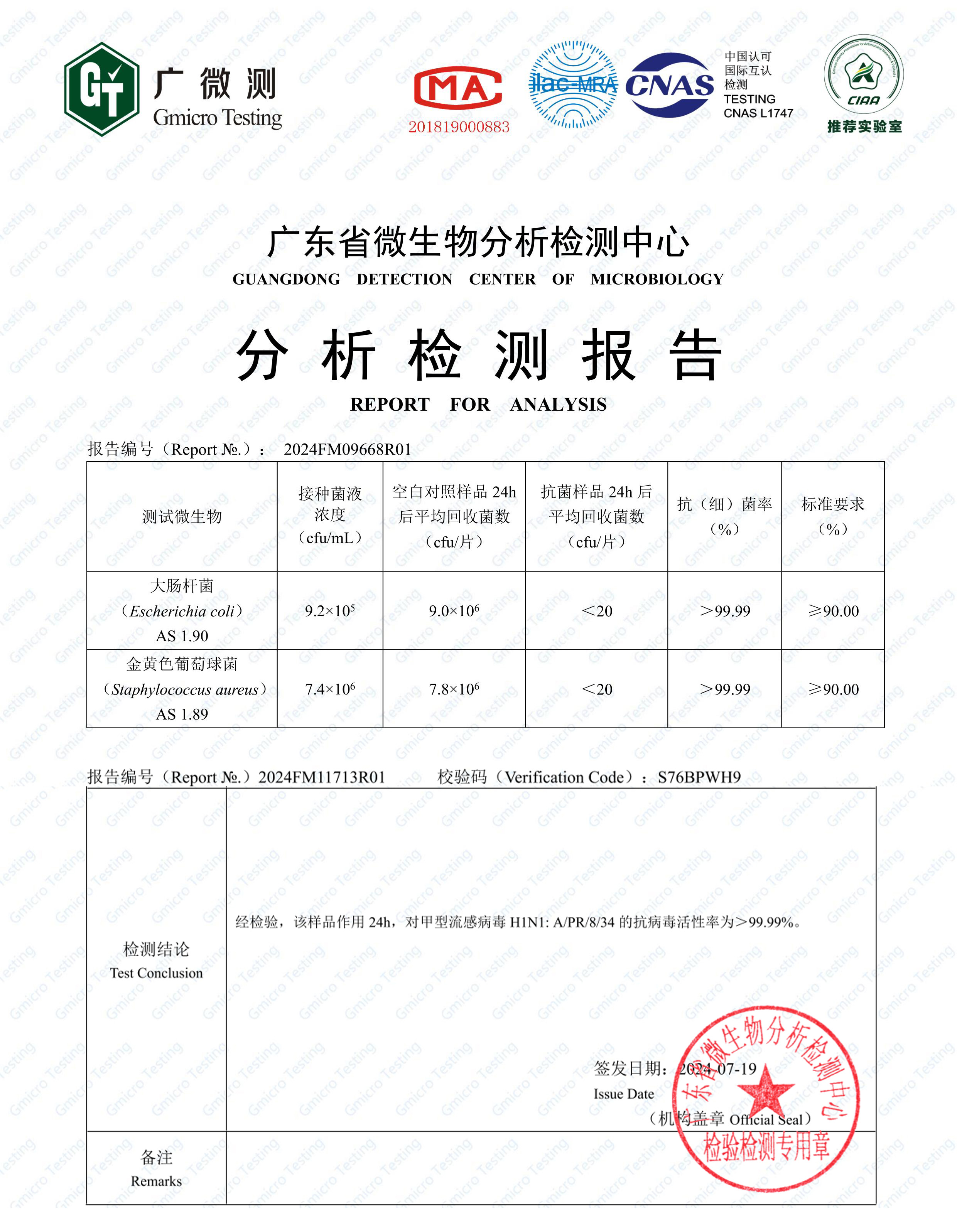 凈醛板具有良好的抗菌性和耐久性,有效防止細菌滋生。通過抗菌抗病毒活性成分,抑制大腸桿菌、巨大芽孢桿菌、金黃色葡萄球菌等微生物,可快速有效殺滅產品表面的細菌、病毒等微生物,抗(細)菌率、抗病毒活性率>99.99%,減少疾病傳播風險,為生活筑起免疫屏障。