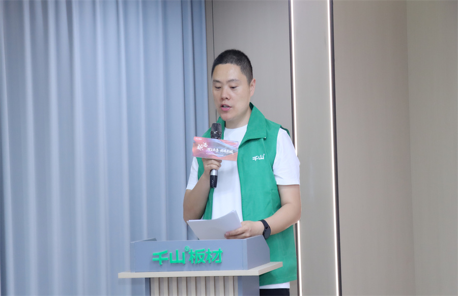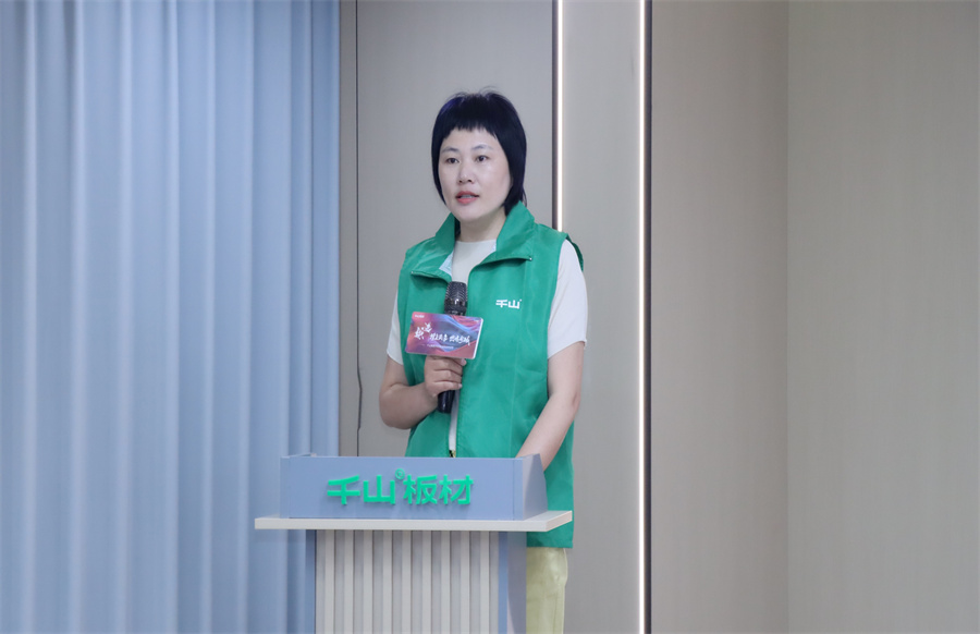 千山板材河南開封運營中心負責人柳娜致辭。柳總強調,抖音正成為連接品質家居與用戶需求的關鍵橋梁。千山板材以“環保+品質”為核心,恰恰是短視頻內容創作的優質素材,從板材的基材工藝到成品家具的顏值落地,從工廠的智能制造到終端客戶的滿意反饋,每一個環節都自帶“流量基因”。